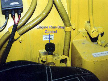 The operator’s compartment is also equipped with a normal shutdown control located beside the operator’s seat. When activated, fuel flow to the engine is shut off causing the engine to shut down.