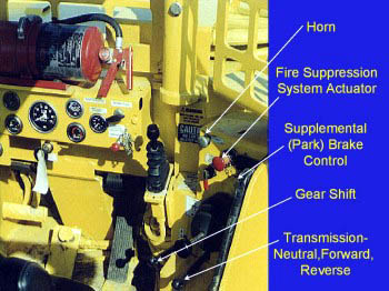 This shows various controls in the operator’s compartment, with close-up views of the controls to follow.
