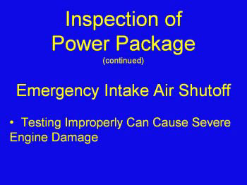 Test the emergency intake air shutoff as described in the equipment manufacturer’s power package permissibility checklist or service/maintenance manual.