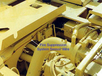 Sensor wire installed throughout the machine is used to detect the presence of fire and provide automatic actuation of the fire suppression system. The presence of fire causes the insulation of the wire to melt, resulting in electrical contact of the bare wires (short circuit) and automatic activation of the system.
