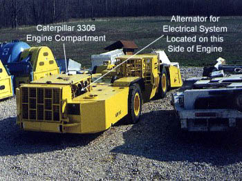 Shown is the location of the alternator, which is the power source for the electrical system installed on the machine.