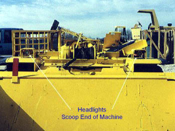 Shown are the two headlights on the scoop end of the machine. The same type permissibility checks described on the previous slide need to be applied to the headlights and their electrical wiring and conduit. The headlights must be protected from damage.