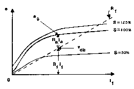 Error is introduced into the calculation of the resistor load line by the simplifying assumptions. The assumption of negligible field current with respect to the load current may produce a significant error for systems operating in magnetic saturation. The error is directly proportional to the ratio of the load resistance to field resistance, Rdb /Rf.