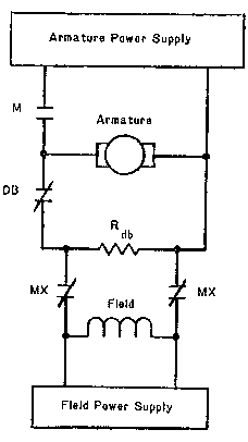 A separately excited dynamic braking system is one in which the source of the field current is external to the machine. Connections for a separately excited dynamic braking configuration are shown in figure 6.