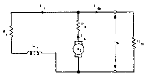 The retarding torque is also proportional to the armature current. The armature current is the sum of the field and load currents (9). The field current can be neglected, with minimal error, if it is small with respect to the load current. Therefore the armature current, ia, would equal the load current, idb. The assumption of constant field flux and negligible field current with respect to the load current allows the required steady-state retarding torque line (Idb) to be drawn directly on the load-current axis as shown earlier for the separately excited system.